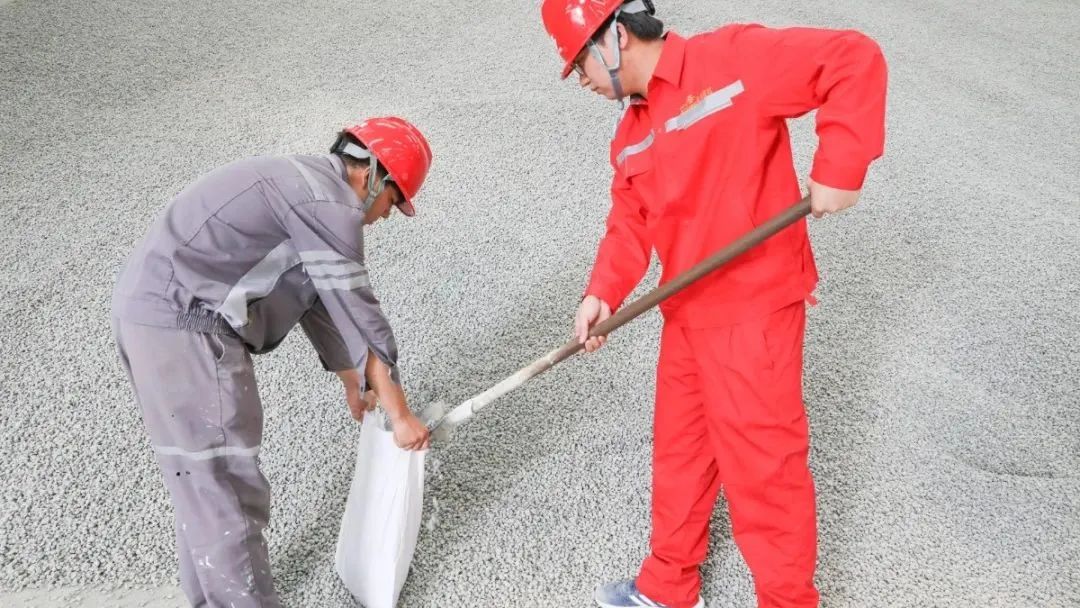水泥穩(wěn)定土生產(chǎn)線上,原料倉、拌合機、傳送帶連成一條高效運轉(zhuǎn)的“長龍”。試驗員顧超強頂著正午的烈日,蹲在剛出料的料子旁取樣檢測,滾燙的料子散發(fā)著熱氣,腳下的地面燙得人直跺腳,他卻依然堅守崗位。“水穩(wěn)是路基的‘骨架’,質(zhì)量不過關,后續(xù)工程就容易出問題,再熱也得把好這道關。”從原料進場到成品出廠,每一個環(huán)節(jié)都凝聚著員工們的嚴謹與堅守。